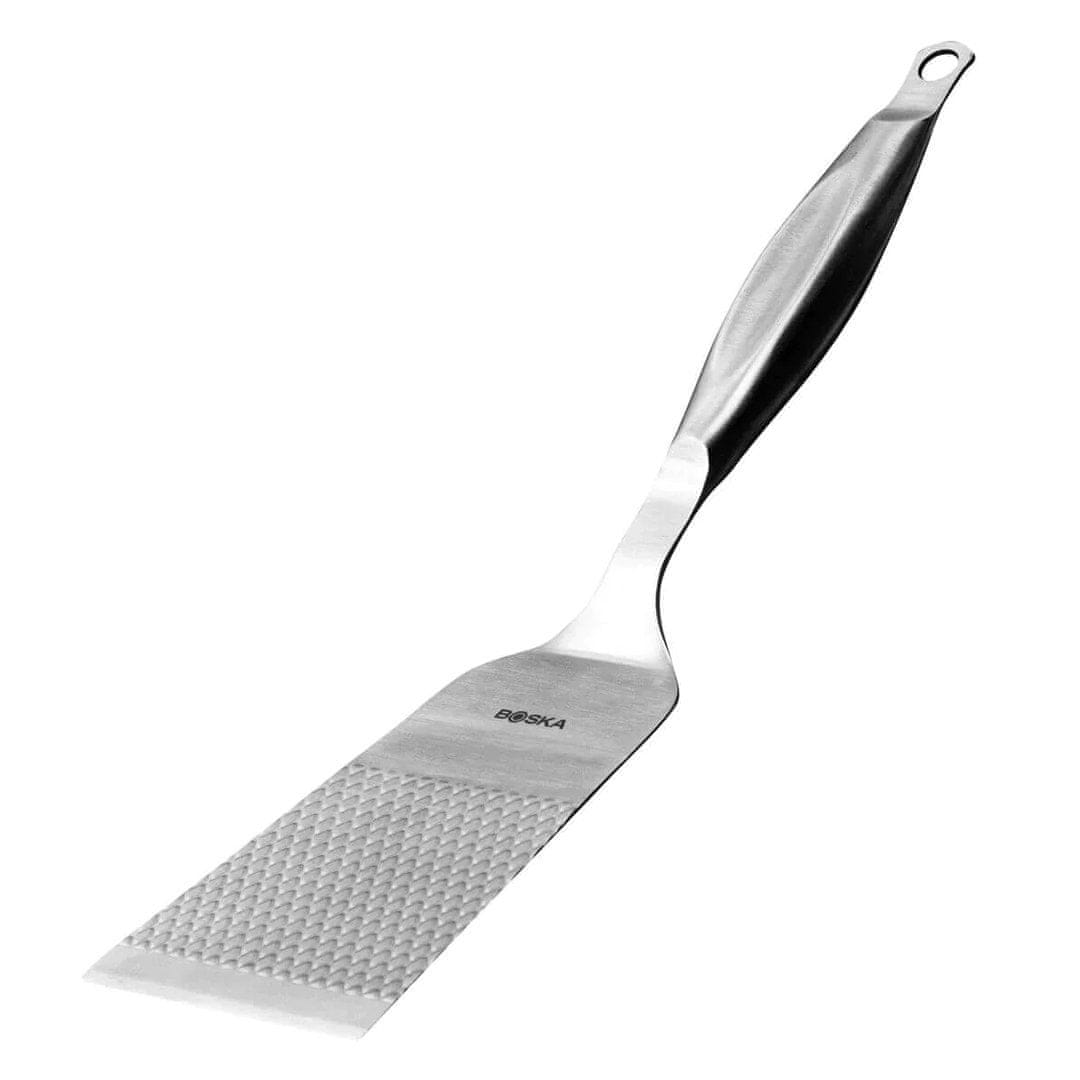 S pripomočki za žar BBQ Monaco boste pokazali, da ste pravi profesionalec v peki na žaru. Ta dva specializirana pripomočka sta izdelana iz 100% nerjavečega jekla, z vzorcem v obliki diamanta, ki ima poleg estetska tudi funkcionalen učinek, saj omogoča boljši oprijem. Ravna lopatka za žar (35,5 × 8,5 cm ) je nepogrešljiva pri peki burgerjev, mesa in zelenjave, saj jih boste z njeno pomočjo hitro in enostavno obrnili ter po potrebi sploščili. Na koncu ročaja je odprtina na katero jo po uporabi lahko obesite. Profesionalna pinceta za žar dolžine 34 cm, omogoča enostavno rokovanje s kosi mesa, rib in zelenjave na žaru. Zahvaljujoč koničasti konici in diamantnemu vzorcu je natančno delo, kot je obračanje piščančjih peruti, škampov in rezin jajčevcev, enostavno. Boska pripomočki za peko na žaru z brezčasnim dizajnom so testirani in odobreni s strani strokovnjakov. Lahko se uporablja med peko na žaru, pa tudi v kuhinji. BBQ Monaco pripomočke za žar uporabljajo številni kuharji in strokovnjaki za žar. Po uporabi jih lahko pomijete v pomivalnem stroju.