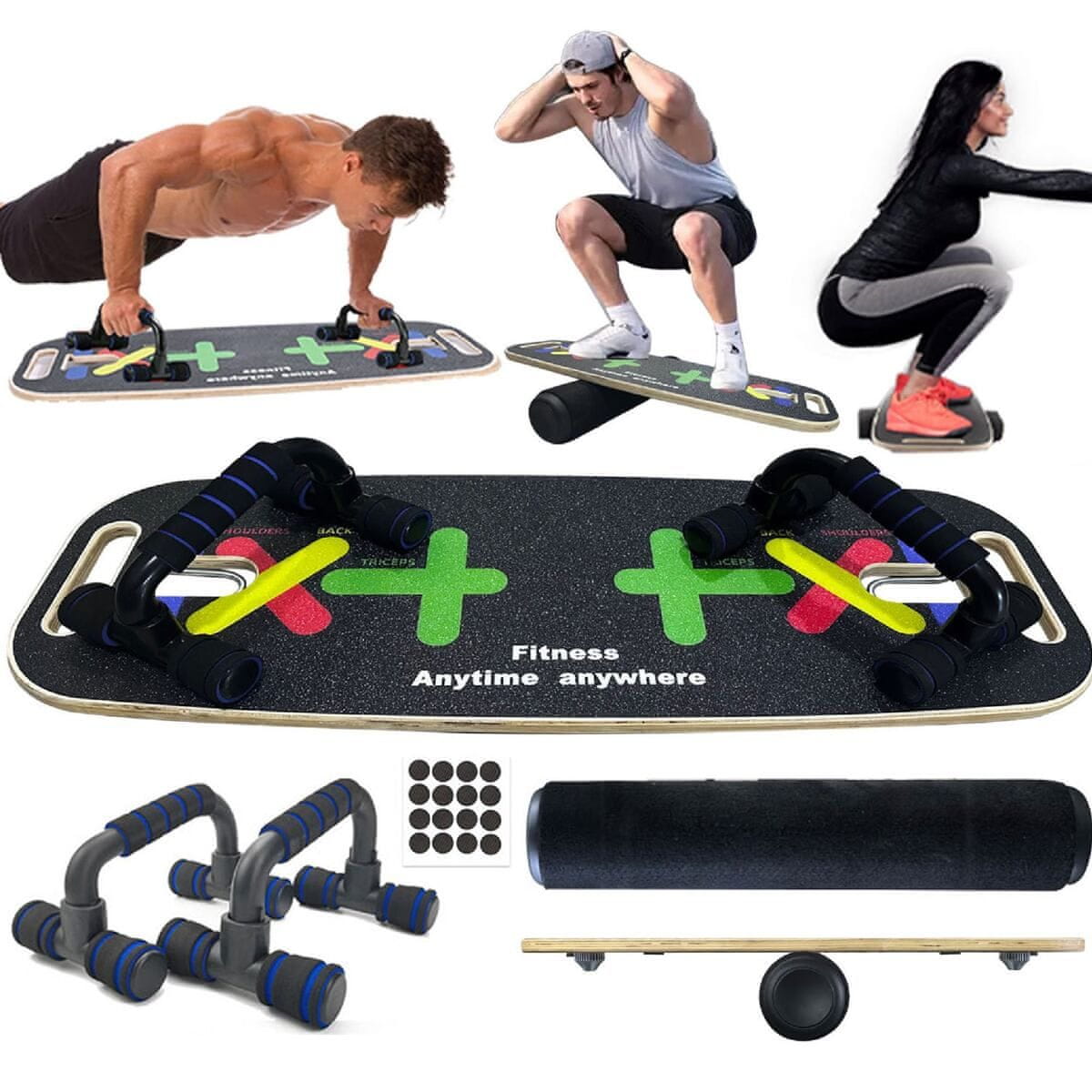 Multifunkcijska ravnotežna deska Merco Power Core je odličen pripomoček za trening za športnike, pri katerih je pomembno ravnotežje. S tem kompletom lahko ustvarite domačo vadbo, ki bo ustrezala vašim potrebameb. Vadba na ravnotežni deski pomaga pri rehabilitaciji kolen, gležnjev in kolkov. Okrepili boste okoliške mišice in tako zmanjšali tveganje za poškodbe teh sklepov. Vrh ravnotežne deske je prevlečen z nedrsečo sloj. Ravnotežne deske Roller lahko uporabljate tudi v zaprtih prostorih, brez potrebe po predpražnik. Komplet vključuje tudi pospeševalno palico z gumijastimi razširitvami različnih uporov, naslone za krmilo, pospeševalna kolesa, sidro za vrata in ročaje. Sidro in ročaji z uporabo gume razširjajo variabilnost vadbe. Z večnamensko ravnotežno desko Merco Power Core ustvarite popolno vadbo in izboljšajte svojo telesno pripravljenost v udobju svojega doma! – Največja nosilnost: 120 kg – teža paketa: 6,3 kg – mere paketa: 76 × 30 × 15 cm – priporočena starost: 9+ – mere deske: 74 × 28 × 2 cm (dolžina x središčna širina x debelina) – mere valja: 53 × 10 cm (dolžina x premer) – teža deske: 2,35 kg – teža valja: Vročina: 1,2 kg – valj prevlečen z mehkim filcem – priložene 4 nogice za pritrditev na spodnjo stran deske za stabilnost – 3 kompleti gumijastih razširjevalcev – nasloni za ročaje – kolesa s premerom 15,5 cm – sidro za pritrditev razširjevalcev – ročaji iz pene – trak za pritrditev na spodnjo ali zgornjo okončino – priložena torba za enostavno prenašanje in shranjevanje