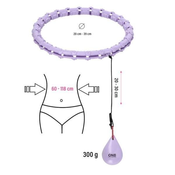 ONE Fitness OHA02 je obroč za hulahop z nastavljivo dolžino, masažnimi ušesi in vrtljivo utežjo.