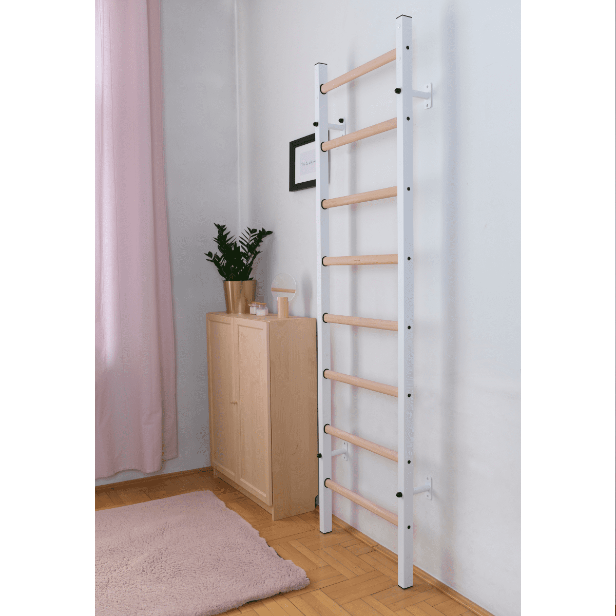 Gimnastični stenski drog BenchK s kovinskimi profili in 8 bukovimi prečkami