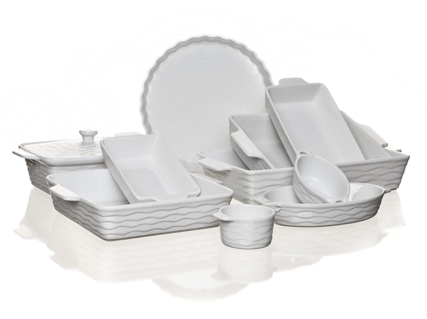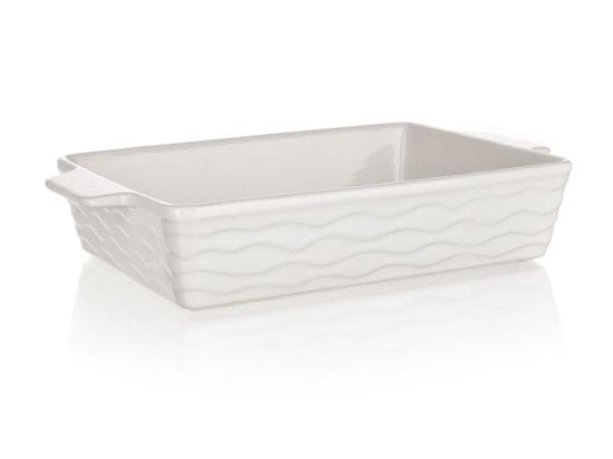 KERAMIKA CULINARIA Beli pravokotni pekač s praktičnimi ročaji za lažje rokovanje. Bela glazura, zunanja stran pekača ima reliefno valovanje. Maksimalna temperatura 240 °C.