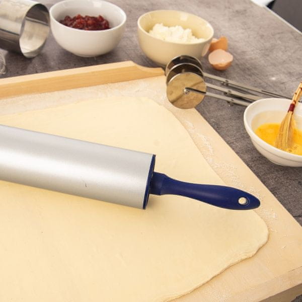 Valj za testo s stranskimi omejevalniki, ki omogočajo izbiro 4 debelin razvaljanega testa. Celoten opis