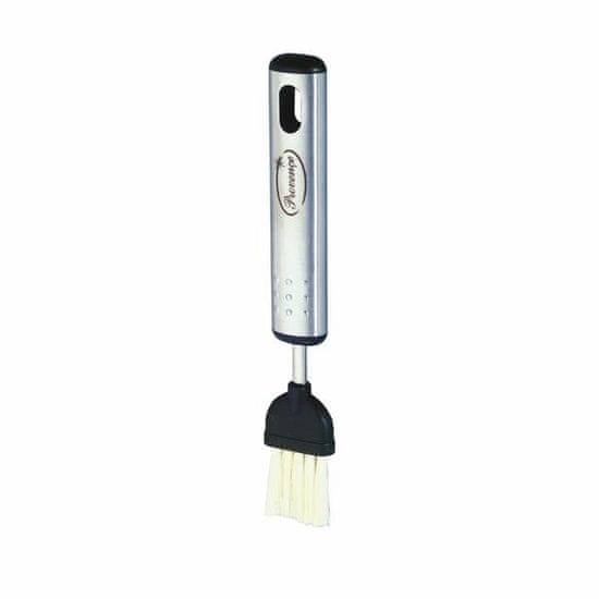 Nož za maslo 18, 4 cm, izdelan iz mat nerjavečega jekla 18/8 v kombinaciji z visokokakovostno črno plastiko, umetne ščetine, ročaj z luknjo za obešanje, praktičen pripomoček za peko in peko na žaru. Primerno za pomivanje v pomivalnem stroju. Dimenzije – 18,4 × 2,6 cm.