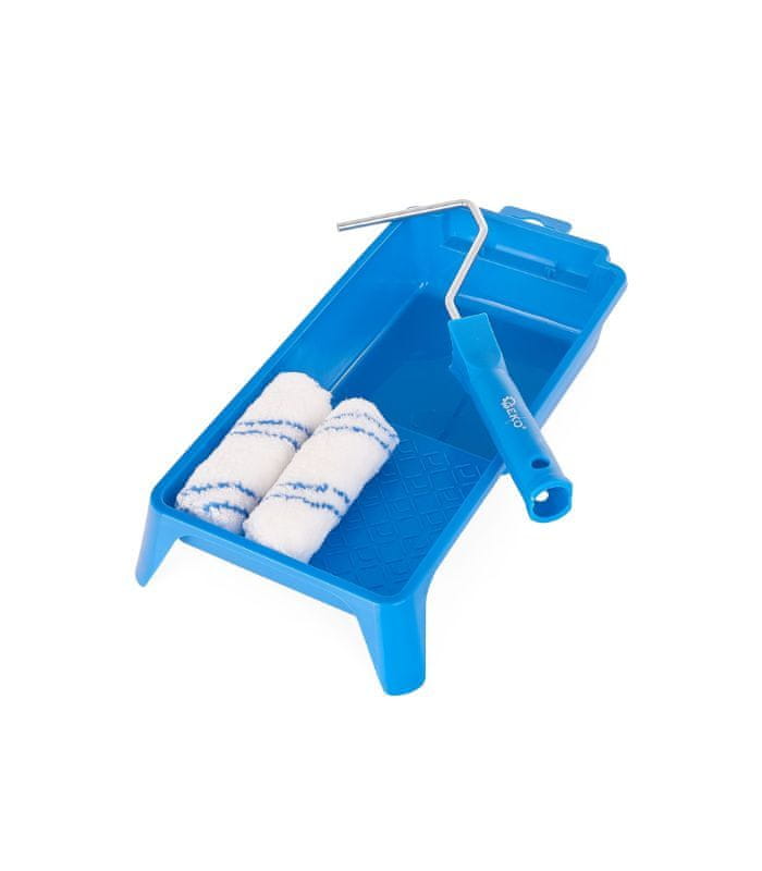 Opis: • Komplet za barvanje, ki ga sestavljata dva 10 cm valjčka, ročaj za valjček in pladenj za barvo • Izdelan iz visokokakovostnih mikrovlaken • Zagotavlja enakomerno in natančno porazdelitev barve • Zasnovan posebej za tanke barve, kot so lazure, laki in akrili • Idealen za barvanje gladkih površin