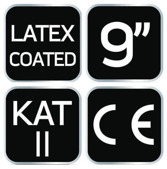 Izolirane delovne rokavice, najlon, prevlečen z lateksom, 4142X 97–613–9 proizvajalca NEO, velikost 9, iz najlona, prevlečenega z lateksom. Imajo visoko odpornost proti obrabi (od 0 do 4) 4, odpornost proti rezom z ostrim predmetom (od 0 do 5) 1, odpornost na trganje (od 0 do 4) 4 in odpornost proti vbodom (od 0 do 4) 2. Odlikuje jih tudi odpornost proti rezom po EN ISO 13997 X. Rokavice se dobro prilegajo roki. Uporabljajo se lahko v vseh vrstah transporta, manipulacije, skladiščenja, skladiščenja, montažnih del, proizvodnje majhnih delov, DIY, avtomobilizma in vrtnarjenja. Zagotavljajo zaščito rok pred mrazom, umazanijo, praskami, žulji in škodljivimi pogoji med delom. Zahvaljujoč ustrezni konstrukciji preprečujejo, da bi vam orodje zdrsnilo iz rok. Oznaka CE za skladnost s standardi EN 388, 22242X in EN511 za zaščito pred mrazom je zagotovilo varnosti, ki dokazuje, da izdelek znamke NEO izpolnjuje vse zahteve EU.