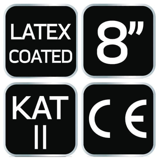 Izolirane delovne rokavice, poliester, prevlečen z lateksom, 2242X 97–612–8 proizvajalca NEO, velikost 8, iz poliestra, prevlečenega z lateksom. Imajo visoko odpornost proti obrabi (od 0 do 4) 2, odpornost proti rezom z ostrim predmetom (od 0 do 5) 2, odpornost na trganje (od 0 do 4) 4 in odpornost proti vbodom (od 0 do 4) 2. Odlikuje jih tudi odpornost proti rezom po EN ISO 13997 X. Rokavice se dobro prilegajo roki. Uporabljajo se lahko v vseh vrstah transporta, manipulacije, skladiščenja, skladiščenja, montažnih del, proizvodnje majhnih delov, DIY, avtomobilizma in vrtnarjenja. Zagotavljajo zaščito rok pred mrazom, umazanijo, praskami, žulji in škodljivimi pogoji med delom. Zahvaljujoč ustrezni konstrukciji preprečujejo, da bi vam orodje zdrsnilo iz rok. Oznaka CE v skladu s standardom EN 388, 22242X je zagotovilo varnosti, ki dokazuje, da izdelek znamke NEO izpolnjuje vse zahteve EU.