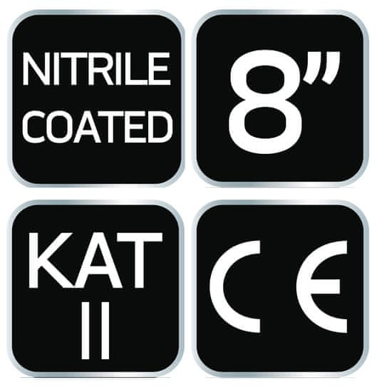 Delovne rokavice NEO zagotavljajo zaščito rok pred umazanijo, praskami in škodljivimi pogoji pri delu. Iz bombažne flanele, prevlečene z nitrilom. Zagotavljajo udobje med uporabo, omogočajo varen oprijem tudi majhnih predmetov, obenem pa preprečujejo, da bi vam orodje zdrsnilo iz rok. Oznaka CE je zagotovilo varnosti, ki dokazuje, da izdelek izpolnjuje vse zahteve EU. Na voljo v velikostih: 8", 9", 10".