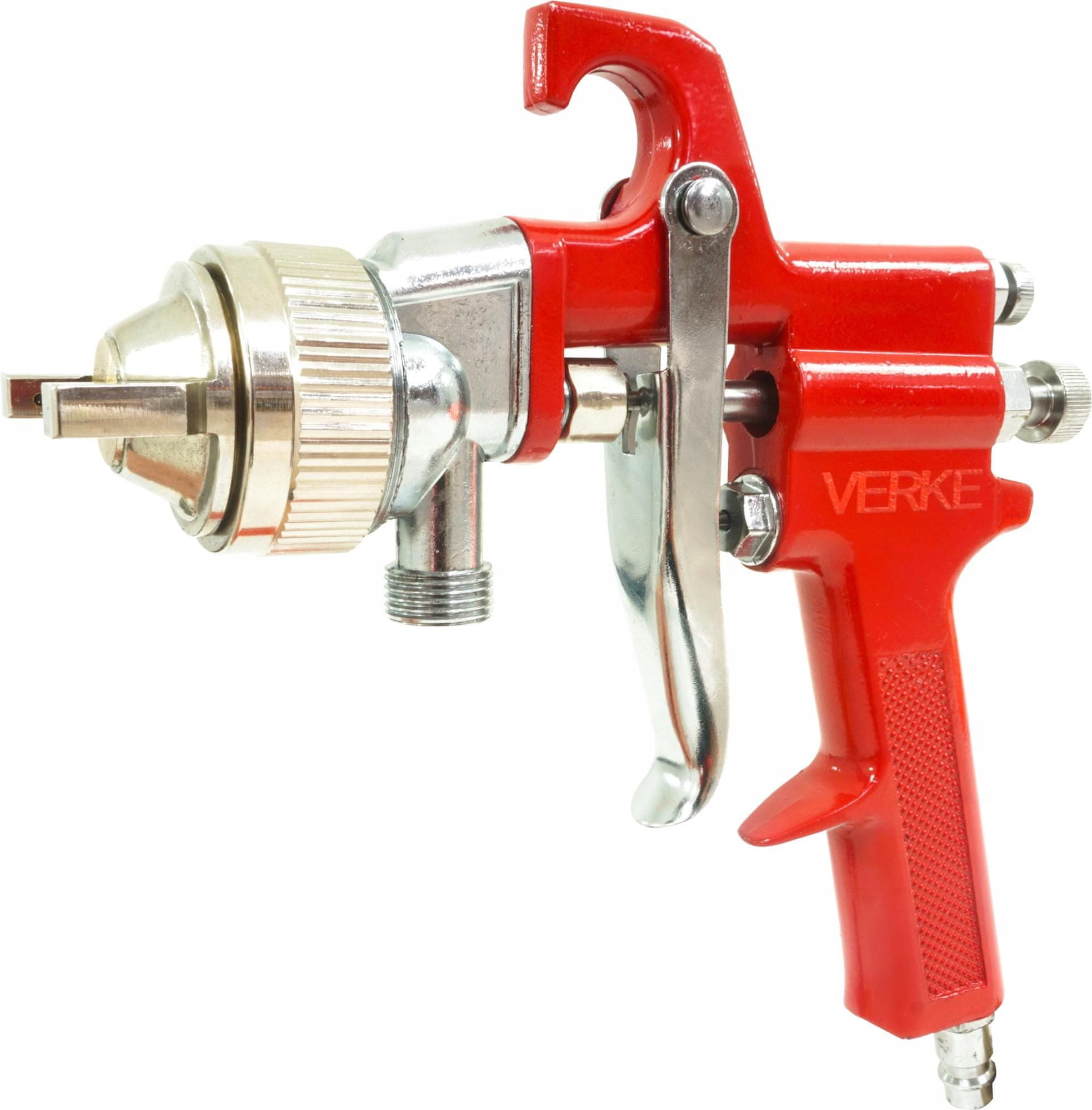 Pnevmatska brizgalna pištola, ki se uporablja v kombinaciji z rezervoarjem za lakiranje. Set odlikujejo zelo dobri parametri pršenja in visoka hitrost barvanja. Razpršilni sistem omogoča uporabo velikih količin barve, ki se hitro nanese, s čimer prihranite čas in denar. Tlačna posoda iz gladkega jekla z visoko odpornostjo proti koroziji. Enota se lahko uporablja za nanos skoraj vseh barv in lakov, lepil, emulzij, lazur, protikorozijskih barv in tapet v spreju. Rezervoar je opremljen s 4 vrtljivimi kolesi za enostavno premikanje.