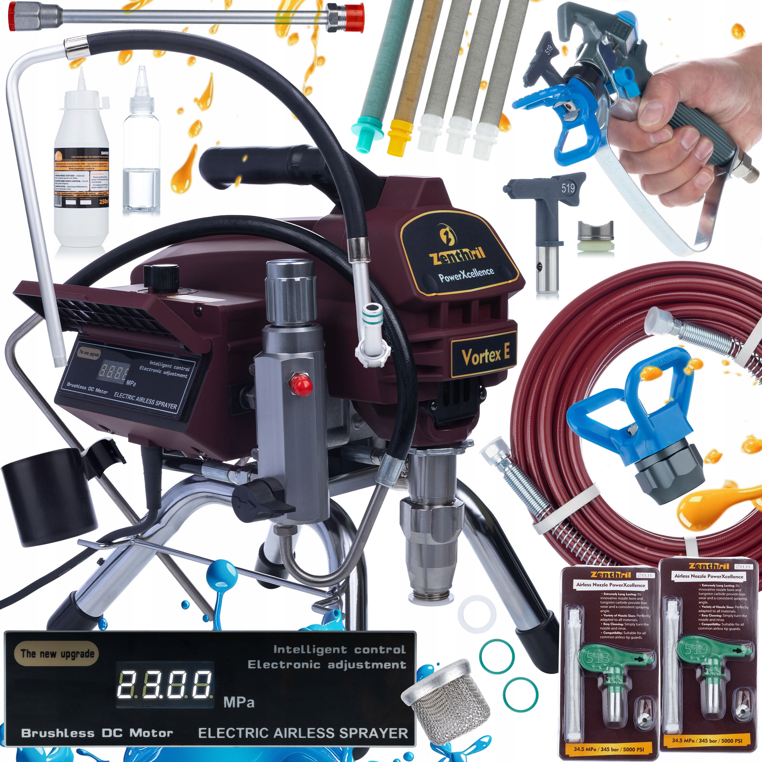 Zenthril Vortex E začetni komplet za brizganje barve, 3000 W, 20 MPa, 0,021", 3,5 l/min, serija PowerXcellence s priborom
