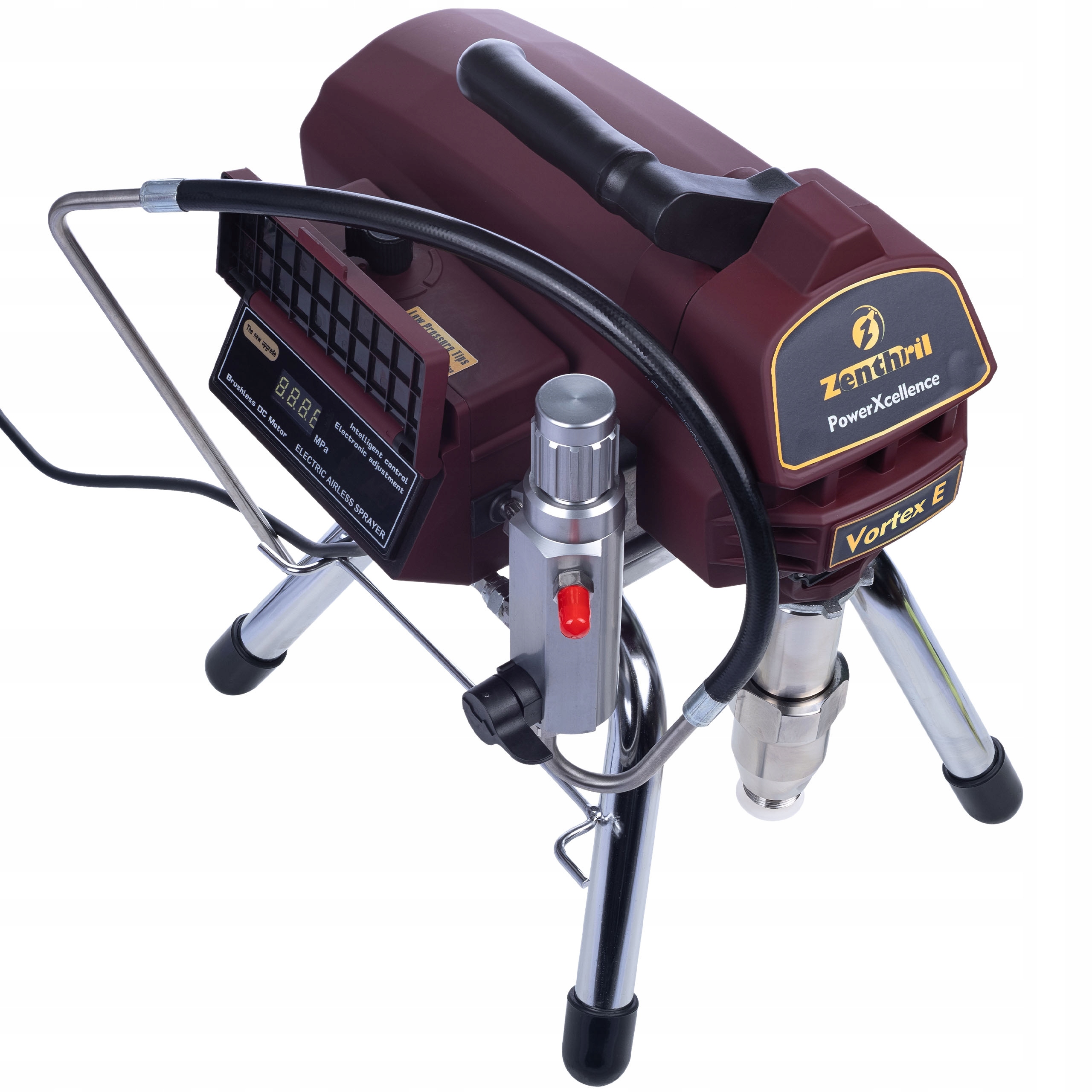 Zenthril Vortex E je napreden brizgalnik barve iz serije PowerXcellence, ki združuje visoko zmogljivost in zanesljivost, zaradi česar je idealna rešitev tako za profesionalce kot za zahtevne uporabnike. Zahvaljujoč sodobnim tehnologijam in robustni konstrukciji je Zenthril Vortex E kot nalašč za intenzivna barvna dela.