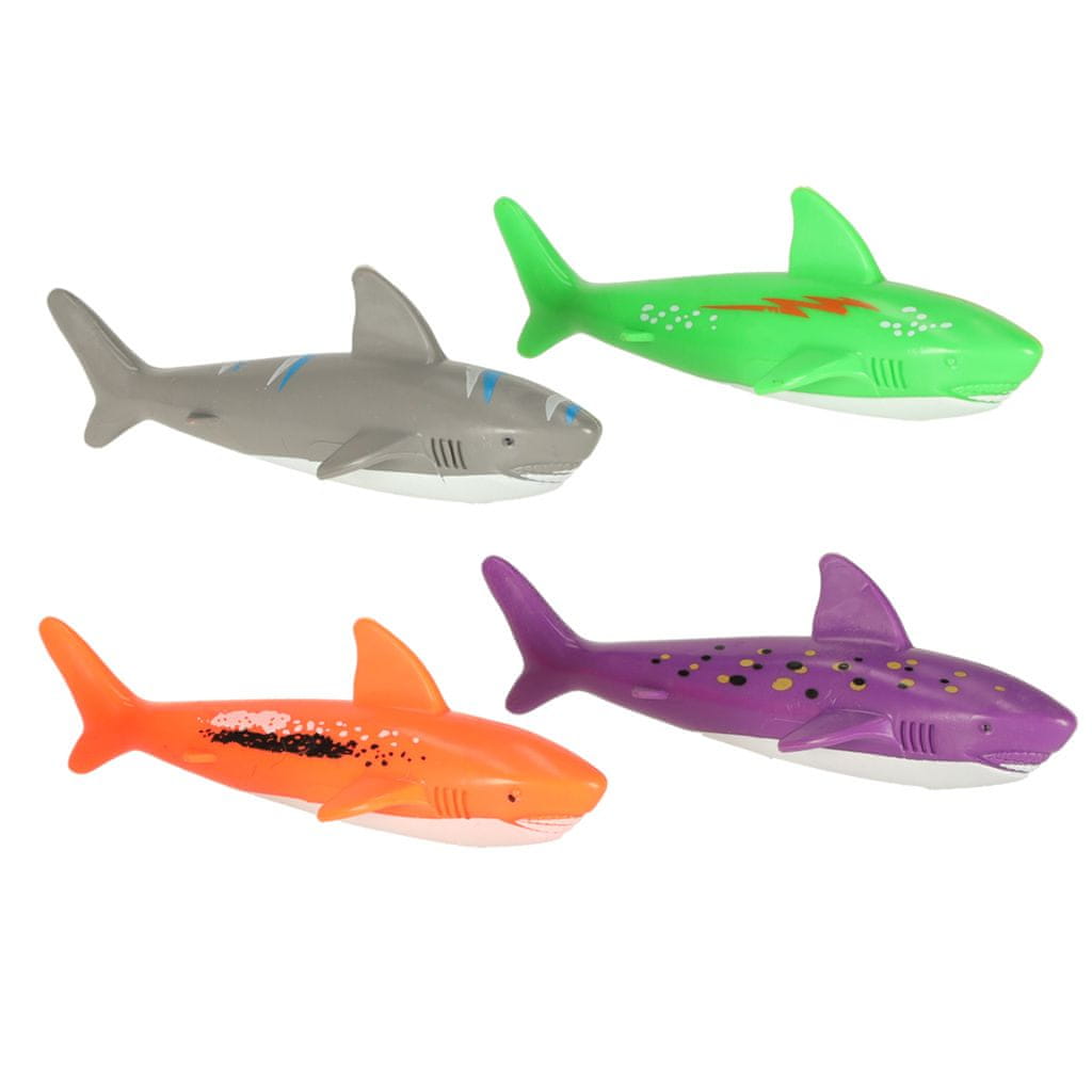4 potapljaški obroči v obliki rib, 3 segmentirane ribe, 3 hobotnice z mehkimi lovkami, 2 × morski konjički, 3 morske alge s penastimi listi, 4 potapljaške palice, 2 × gusarski kovanci, 4 morski psi v različnih barvah, 1 gusarska ladja (s številko 15 – lahko se uporablja kot igralni element), 1 × temno modra vrečka za shranjevanje. Navodila za uporabo. Kartonska embalaža.Tehnični parametri: