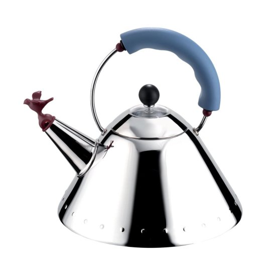 Čajnik BIRD z modrim ročajem in s piščalko v obliki ptice je eden najbolj prodajanih pripomočkov Alessi na svetu. Leta 1985 ga je zasnoval Michael Graves. V njem je združil vplive evropske umetnosti, ameriškega popa in citatov iz predkolumbovskih kultur. Celoten opis