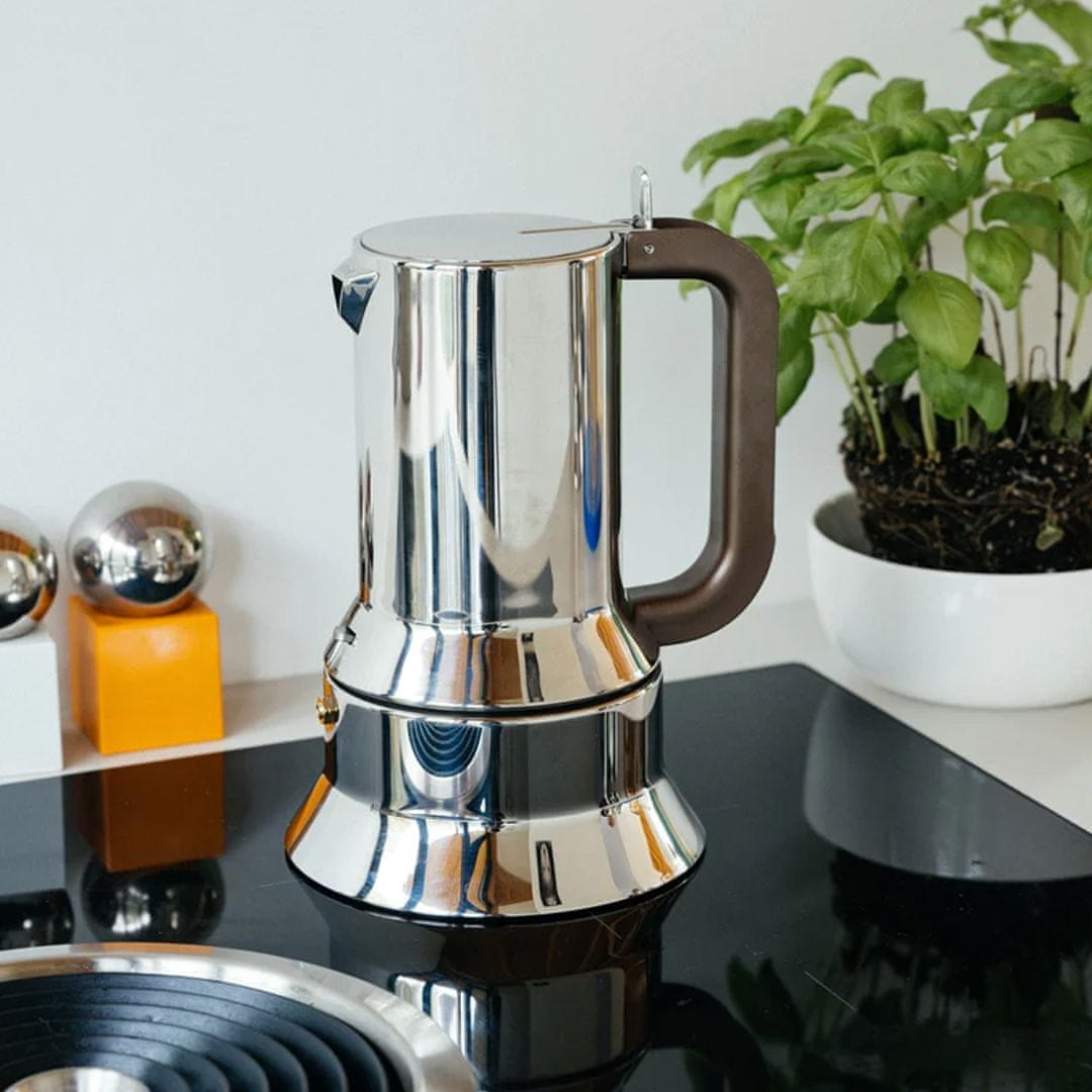 Kafetiero Alessi Espresso 9090 je zasnoval iz kakovostnega nerjavečega jekla, brez plastičnih delov. Je elegantnega in modernega videza, primerna za plinske in električne štedilnike, tudi za indukcijo. Izvirnosti ji ne daje le njena posebna oblika, temveč tudi nekatere funkcionalne novosti. Podlaga omogoča maksimalizacijo toplote, izliv za nalivanje pa je oblikovan tako, da preprečuje kapljanje in ima zaporo ročice, ki omogoča odpiranje posode za kavo s preprosto potezo roke. S seboj jo lahko vzamete kamor koli, saj je lahka in enostavna za uporabo. Prostornina zadošča za 6 skodelic kave.