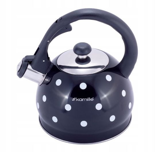 kamille Čajnik iz nerjavečega jekla/lak 2L PUNTIK indukcija, črn