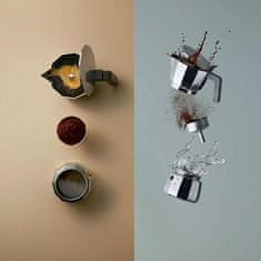 Kuhalnik za kavo ima prostornino 300 ml in lahko napolni do 6 skodelic kave. Prilagojen je plinskim in električnim štedilnikom, opremljen pa je z udobnim ergonomskim ročajem.