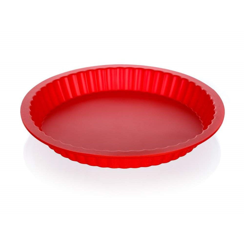 Silikonski model za torte 27 cm Rdeča CULINARIA, višina 3,5 cm. Kalup je odporen proti visokim temperaturam (do 240 stopinj Celzija).C), lahko se uporablja tako v električni kot mikrovalovni pečici, ne veže okusov ali vonjav hrane, je enostaven za vzdrževanje (primeren za pomivanje v pomivalnem stroju) in je zložljiv. Silikon je zelo priljubljen material, ki se zaradi svojih edinstvenih lastnosti uporablja v kuhinji. Uporablja se za izdelavo različnih vrst pekačev, valjarjev in valjarjev za testo, lopatk, lopatic, različnih vrst kuhinjskih pripomočkov in številnih drugih izdelkov.