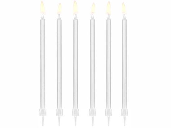 Gladke bele rojstnodnevne svečke, višina približno 14 cm.