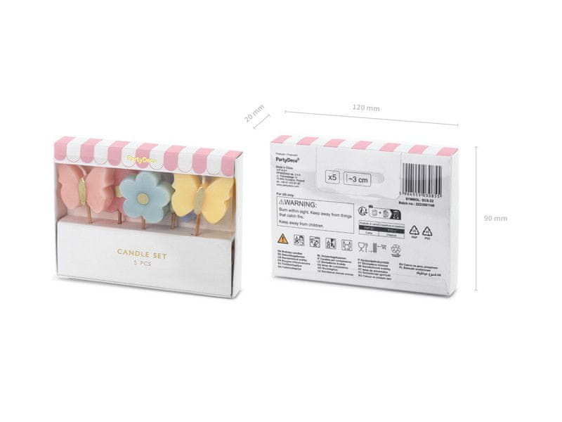 Rojstnodnevne svečke v obliki metulja, 3,5 cm, mešane (1 paket / 5 kosov) Celoten opis