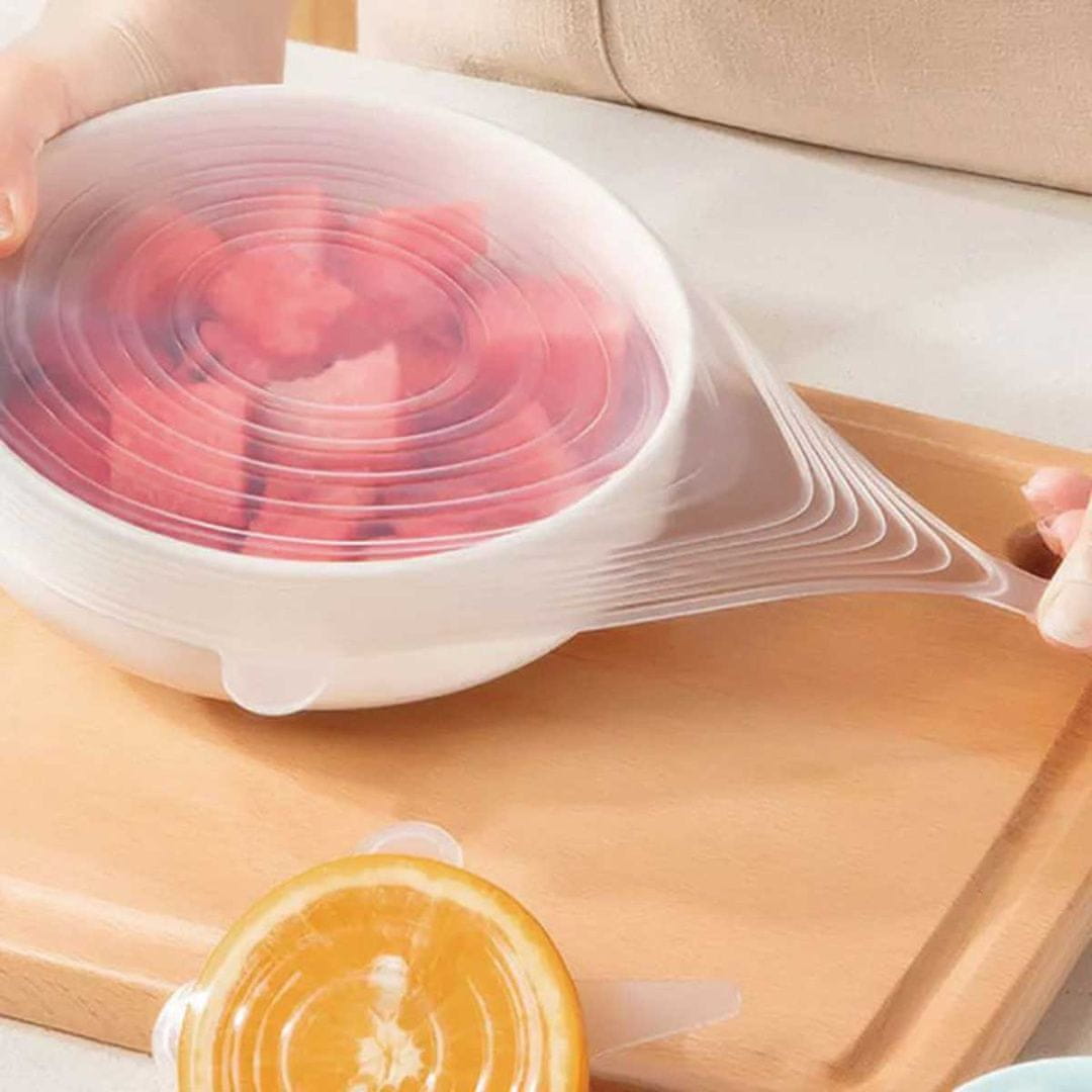 Pozabite na prozorno folijo in pokrove za enkratno uporabo! Silikonski raztegljivi pokrovi KINGHoff KH-1902 so okolju prijazna rešitev za večkratno uporabo, ki se popolnoma prilagodi različnim posodam. Omogočajo enostavno, varno in okolju prijaznejše shranjevanje hrane.