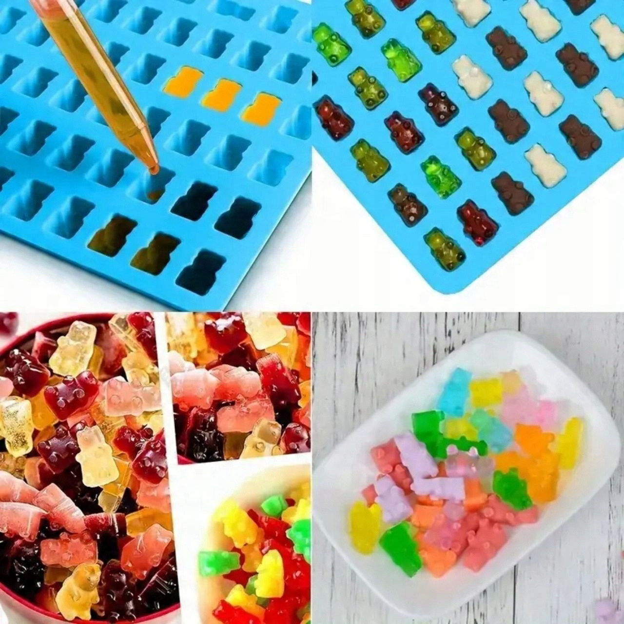 tosilikonski kalup za žele fižolz50 lukenj v obliki medvedkaje prava poslastica za odrasle in otroke. Zmešajte sestavine, uporabite pipeto za natančno vlivanje in … končano! To ni samo zabavno – jeustvarjanje sladkih mojstrovinki jih lahko jeste ali podarite!