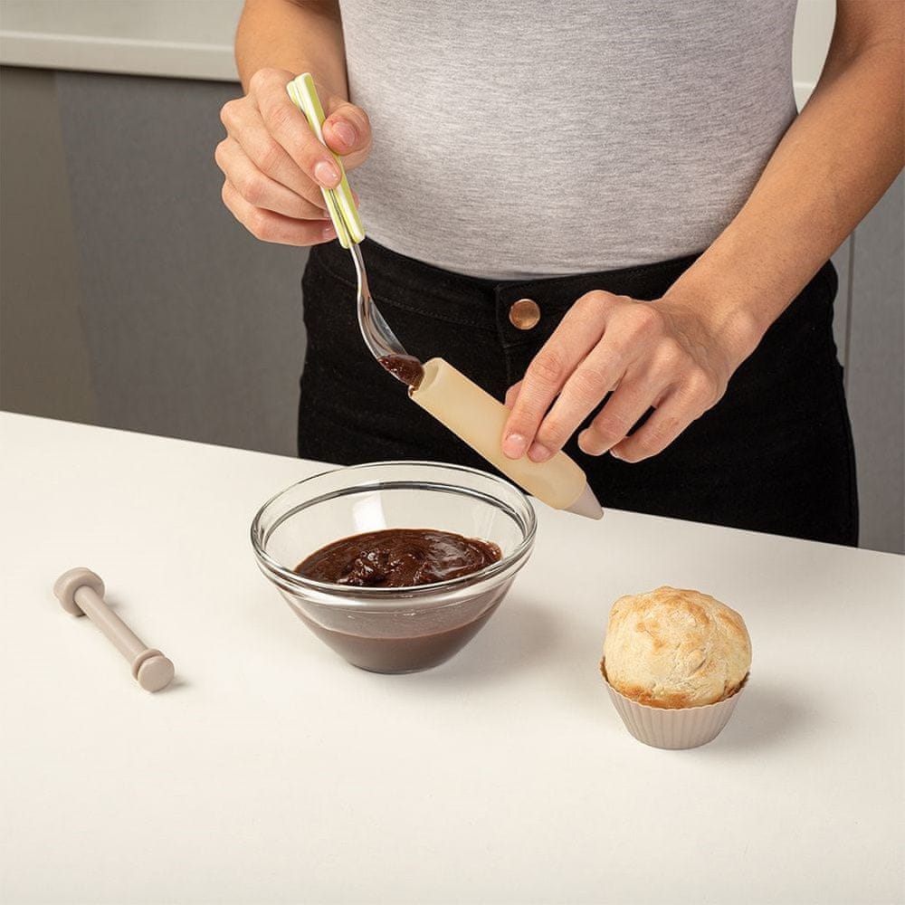 Marker za okraševanje z glazuro. Trdno izdelan, udoben za uporabo. Zelo enostaven za uporabo; preprosto ga napolnite z glazuro ali čokoladno glazuro in ga uporabite kot pisalno pero. Zahvaljujoč njegovi natančnosti lahko enostavno ustvarite privlačne napise in okraske. Popoln za okraševanje mafinov in tort. Originalni izdelek grške blagovne znamke NAVA iz linije kuhinjskih dodatkov Misty . Izdelano v skladu z evropskimi standardi.