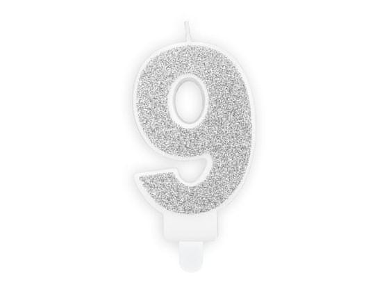 Srebrna bleščeča sveča številka „9“ Celoten opis