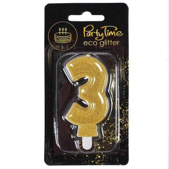 Svečka s številko in eko bleščicami št. 3