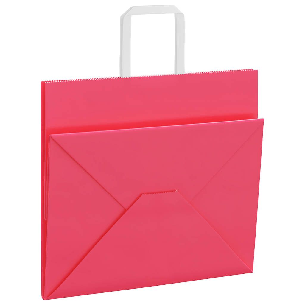Vidaxl Papirnate vrečke 250 kosov z ročaji roza 32x22x28 cm
