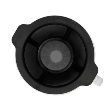 Želite začeti uporabljati alternativne metode priprave kave, vendar ne veste, katero izbrati? Ta japonski pripomoček vam omogoča, da na preprost, a učinkovit način pridobite najboljše lastnosti vaše kave. Metoda pour-over zagotavlja veliko zabave in priložnosti za eksperimentiranje s kavo. Presenetite svoje prijatelje z bogatim okusom in aromo kave ter tehniko njene priprave! Za pripravo okusne kave potrebujete sveže mleto, kakovostno kavo, svojo najljubšo skodelico ali strežnik ter tehtnico. Na posodo, iz katere boste postregli kavo, postavite kapalko in vanjo nasujte zmleta zrna, nato pa postopoma dolivajte vodo. Za pripravo kave potrebujete le 3 do 4 minute. Porcelanski kapljalnik ima na notranjih stenah utore, ki zagotavljajo optimalen pretok vode pri kuhanju s papirnatimi filtri. Kapalka je združljiva s filtri Hario V60–02, priložen pa vam je tudi plastični filter s cedilom, da vam ne bo treba uporabljati papirnatih filtrov za enkratno uporabo. Zvarek, pripravljen brez papirnatega filtra, bo imel polnejši okus in bolj mastno teksturo. Prednosti te metode so tudi izjemno enostavno vzdrževanje. Po uporabi kapljalnik preprosto operite pod tekočo vodo ali v pomivalnem stroju.Izdelano na Japonskem.