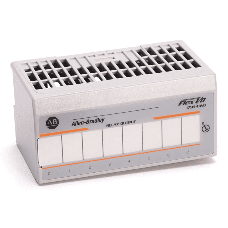 The Allen-Bradley 1794-OW8 is a Relay output module that is part of the Flex I/O product family. This module primarily features Eight (8) isolated Normally Open (N.O.) electromechanical relay that are rated 250V AC, 2 A, 50/60Hz for resistive load; 120/240V AC, 50/60Hz,1800V A Make, 180V A Break; 5…30V DC, 2 A, Resistive;