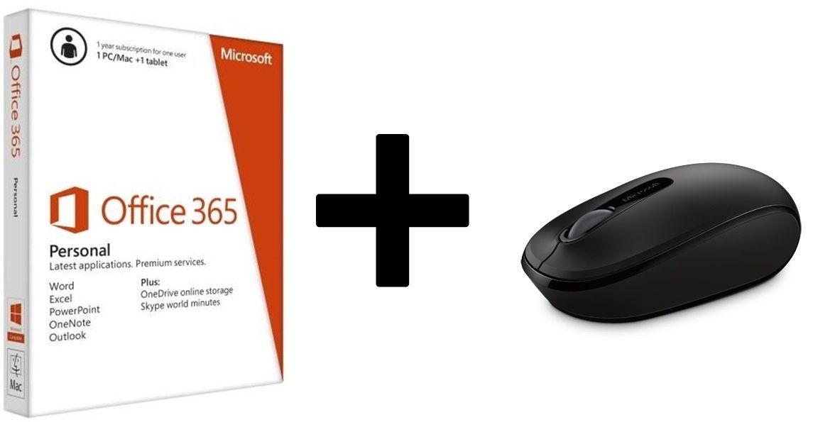 Microsoft Office 365 Personal 32/64-bit SLO 1YR + miška 1850, črna