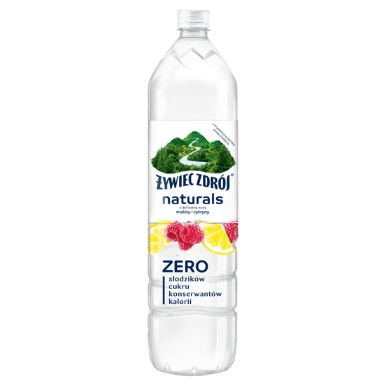Negazirana pijača z okusom maline in limone. Pasterizirano. Kombinacija kristalne gorske izvirske vode iz Żywieca Zdrója, pridobljene iz varovalnega pasu krajinskega parka Żywiec, z naravnim sadnim sokom in osvežilnim pridihom sadja. Samo naravne arome. 100 % sestavine naravnega izvora. Kristalno gorsko izvirsko vodo združujemo s 100 % naravnimi aromami, vendar brez sladkorja, sladil, konzervansov ali kalorij. Tako nastane Żywiec Zdrój Naturals. Naravni užitek vode in subtilen okus.