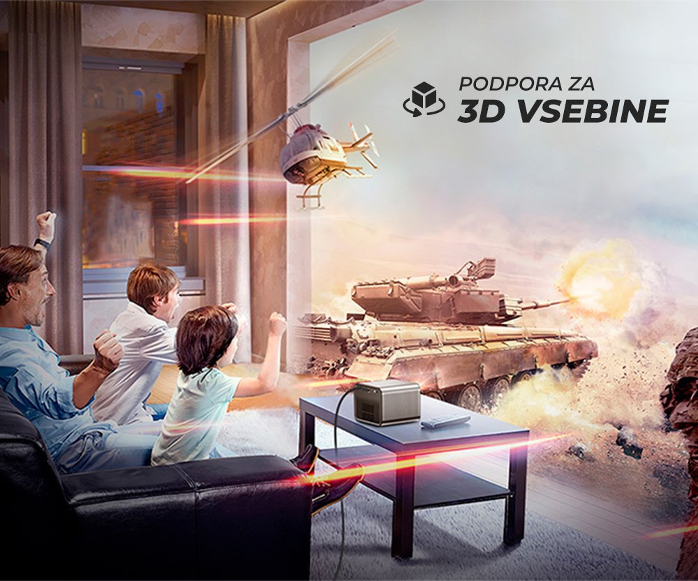 Uživajte v realističnem 3D doživetju, saj projektor omogoča ogled 3D filmov in ustvarjanje realističnih efektov, ki jih lahko zasledite v njih. Navdušenje za vas in vaše najmlajše!