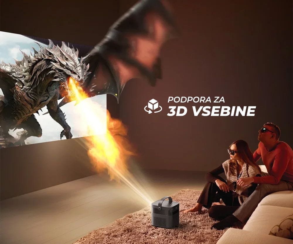 Uživajte v realističnem 3D doživetju, saj projektor omogoča ogled 3D filmov in ustvarjanje realističnih efektov, ki jih lahko zasledite v njih. Navdušenje za vas in vaše najmlajše!