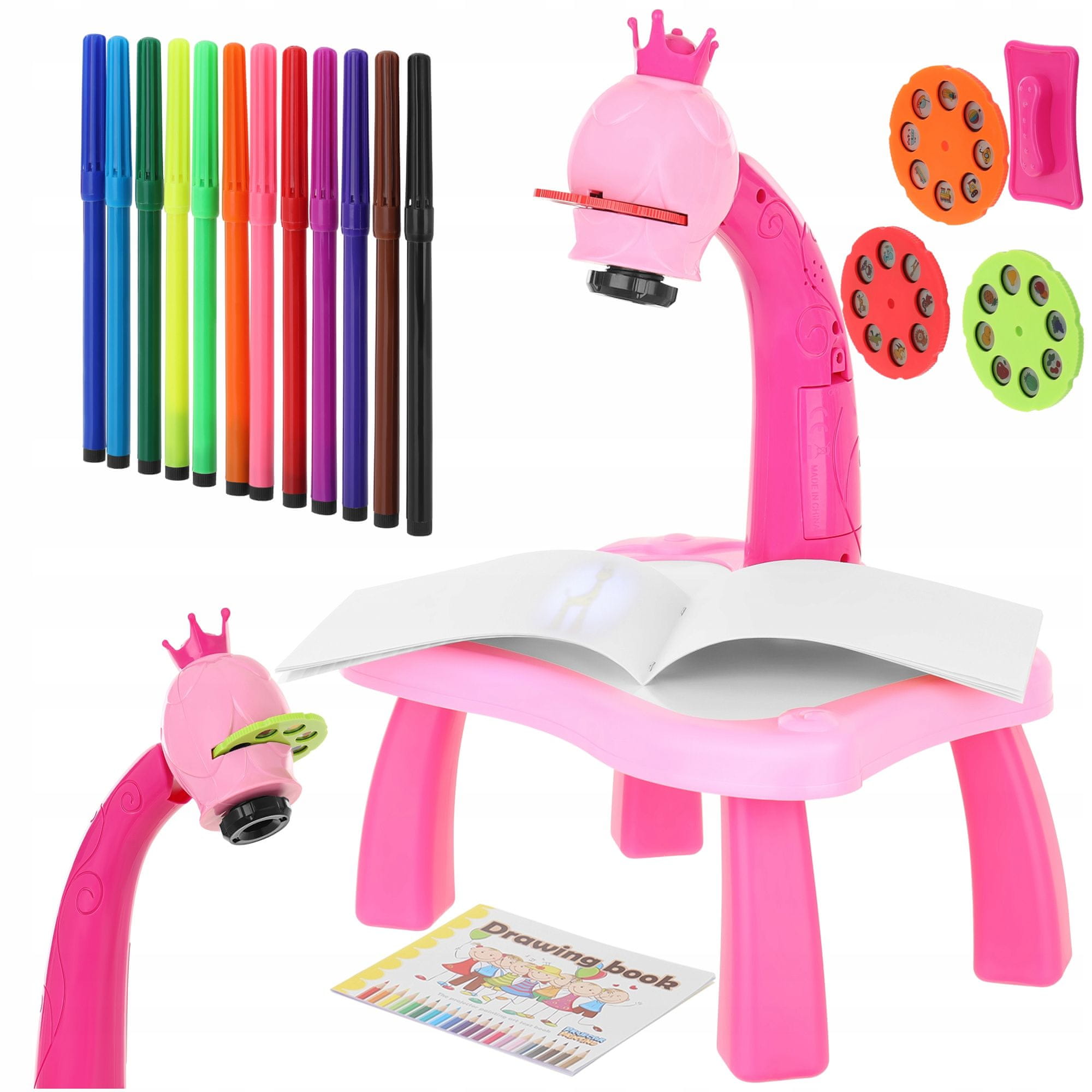 Projektor je pritrjen na stabilno mizo, kar otroku zagotavlja udobje med slikanjem. To je izjemno priročna funkcija, ki je odlična za potovanja. S ko je zložena, miza zavzame malo prostora, ko pa je razgrnjena, ponuja dovolj prostora za risanje.