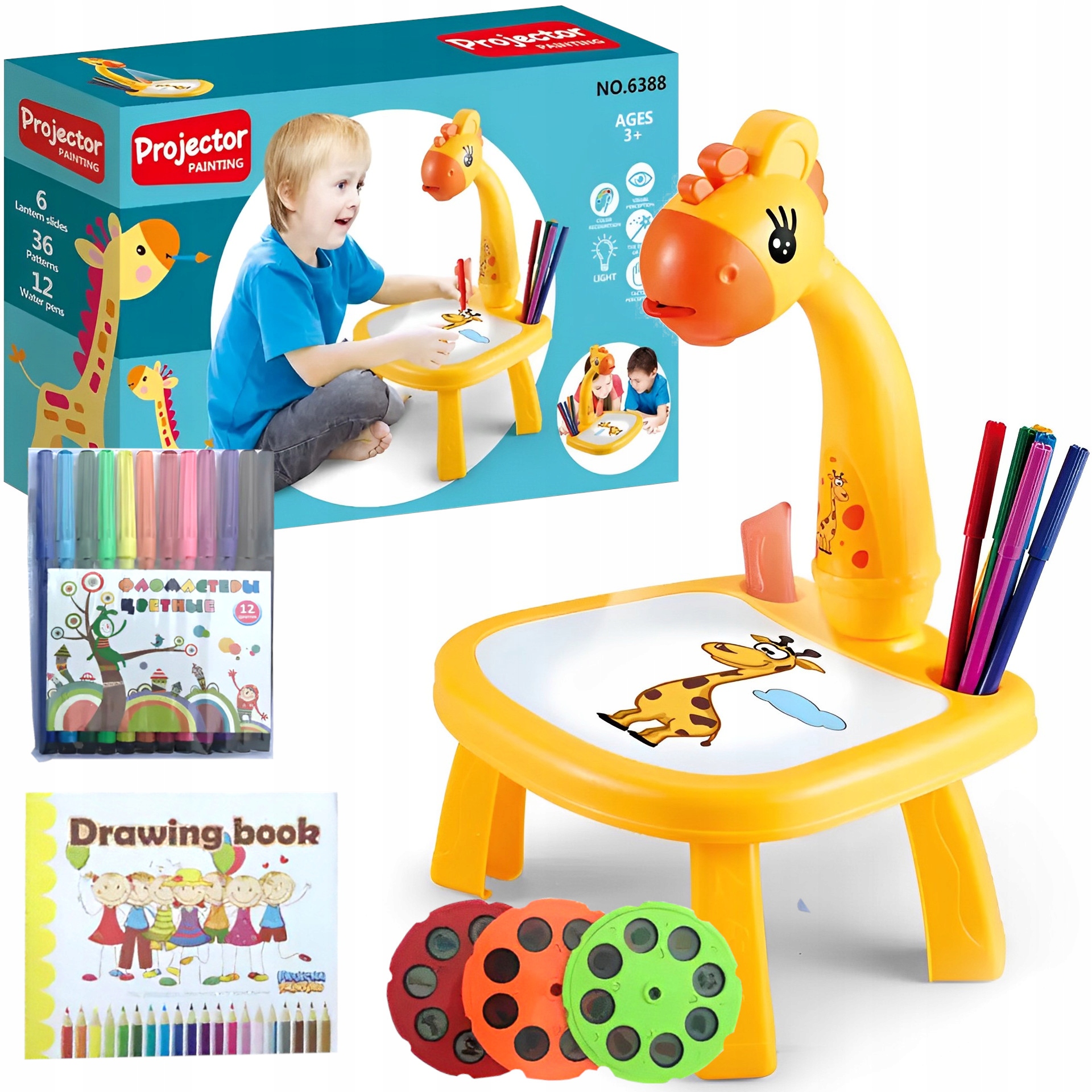 Otroci radi rišejo, naš projektor pa vam omogoča ustvarjanje čudovitih slik s pomočjo svetlobe! Komplet vsebuje tri zamenljive diske, od katerih vsak vsebuje 8 vzorcev, razdeljenih po temah – živali, morska bitja, vozila in sadje!