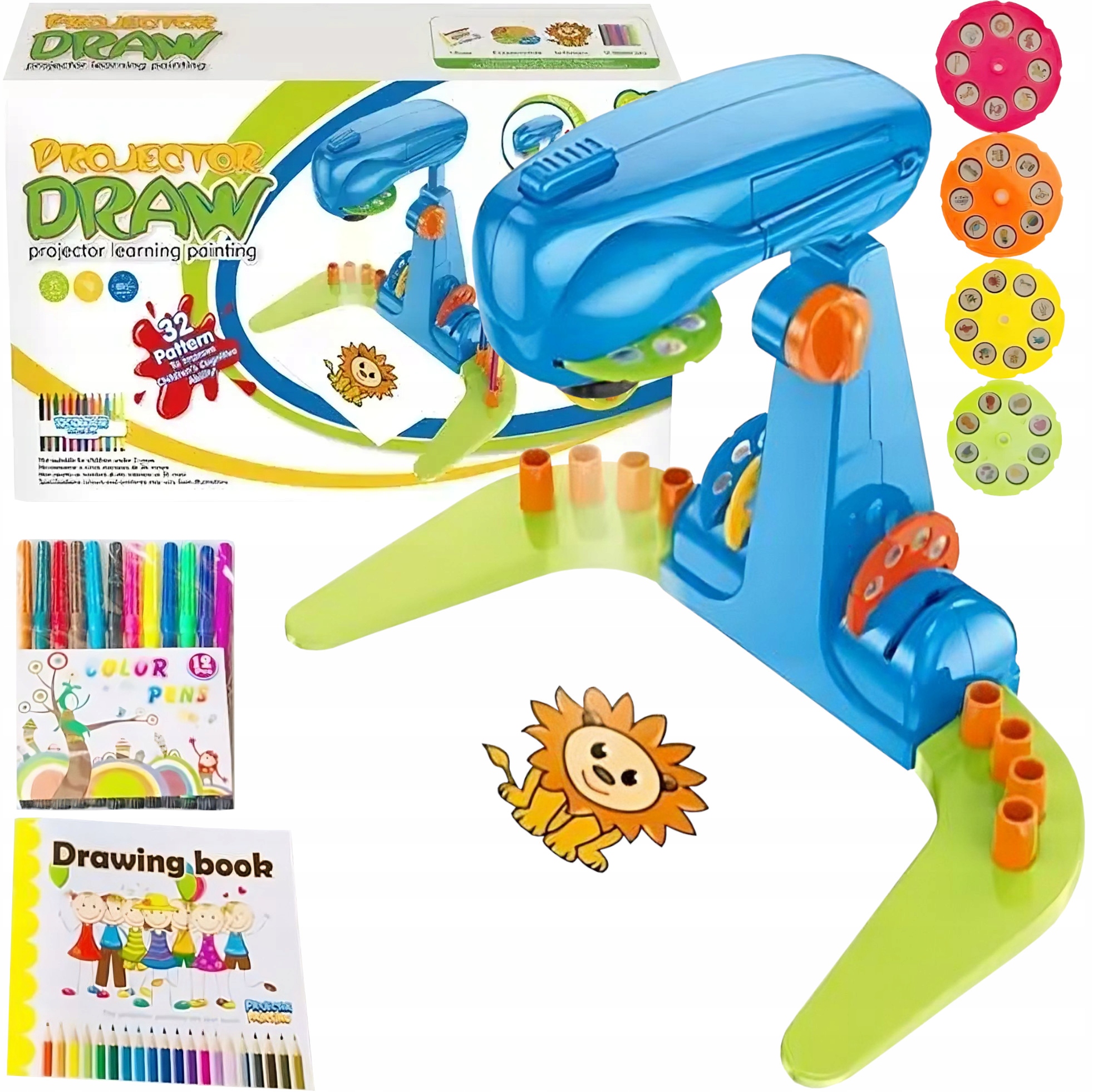 Odkrijte do 32 različnih slik za projiciranje . Vsak disk vsebuje 8 tematskih dizajnov, kot so živali, morska bitja, vozila in sadje. To bo vašemu otroku dalo neskončne možnosti za ustvarjanje in eksperimentiranje.
