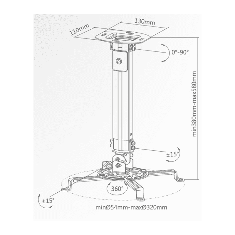 • Nosilec za projektor Full Motion • Funkcija vrtenja za 360° • Združljiv z VESA ø 54–320 mm • Polno gibanje Celoten opis