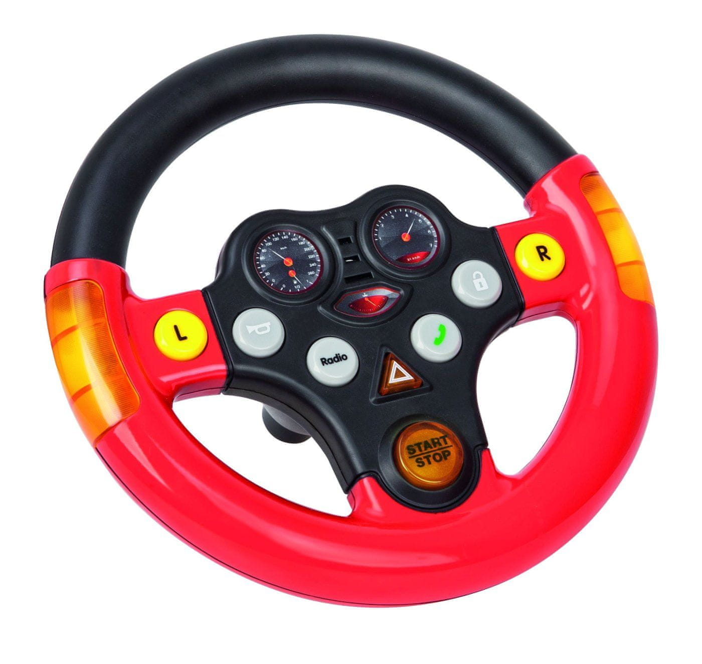 Vsefunkcijski volan s svetlobnimi in zvočnimi učinki. Funkcije: levi/desni smernik (luč LED) + dodatni zvok, zvok zaklepanja avtomobila, sirena, zvok izbiranja telefonske številke in zvonjenja, zvok zagona in seveda radio. Premer volana 19,5 cm. Starost: 1+