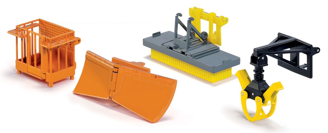 Set priključkov za traktorje SIKUFARMER32 s čelnimi nakladalniki. Sestavljajo ga delovna ploščad, snežni plug, pometalna krtača in zajemalka za drevesna debla. Delovna ploščad je opremljena tudi z vrati. Snežni plug je mogoče premikati z leve na desno, vsi trije pobiralci hlodovine pa imajo prosto gibljive „kremplje“. Posebnost pometalne krtače so priložene paletne vilice. Z njo se lahko krtača pobere. V nosilec pometalne krtače se namestijo tudi zobje paletnih vilic traktorja Fendt 939 Vario s čelnim nakladalnikom iz serije SIKUCONTROL32. Merilo: 1:32. Dimenzije: 210 × 131 × 59 mm. Velikost paketa: 21 × 13,1 × 5,9 cm. 3+