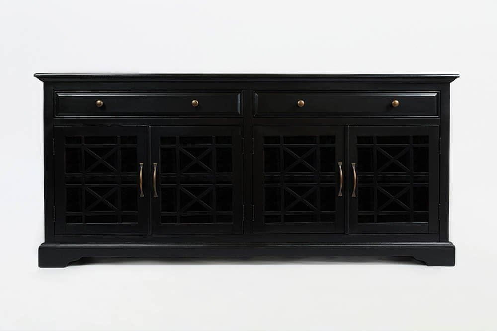 Avola AV275–9 Komoda, značilne rdeče obrabe, črna, 4 vrata, 2 polici, 2 predala, akacijev les, MDF, sestavljeno, 64 kg, 178 × 82 × 49 cm, za odrasle, akacija, les, plošča – les, brez LED, fiksno
