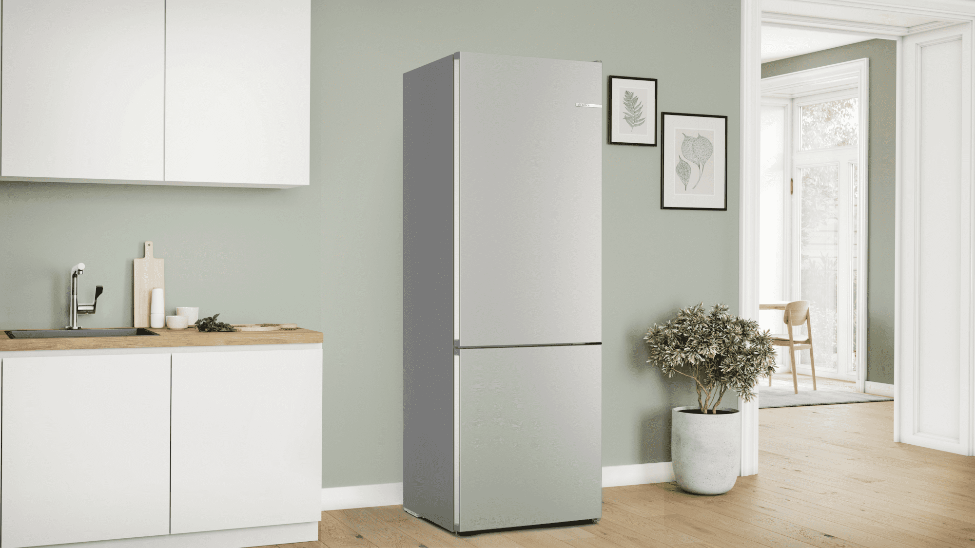 Prostostoječi hladilnik Bosch KGN492IDF odlikuje skupna uporabna prostornina 440 l – prostornina hladilnega dela znaša 311 litrov, prostornina zamrzovalnega pa 129 litrov. Uvršča se v energijski razred D. Ponaša se z zamrzovalnikom spodaj in VitaFreshBox XXL predalom, ki ohranja vaše sadje in zelenjavo dlje časa sveže.
