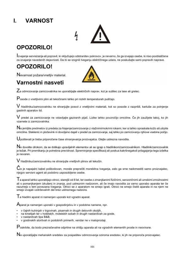 | Sistem odmrzovanja – zamrzovalnik | ročno |