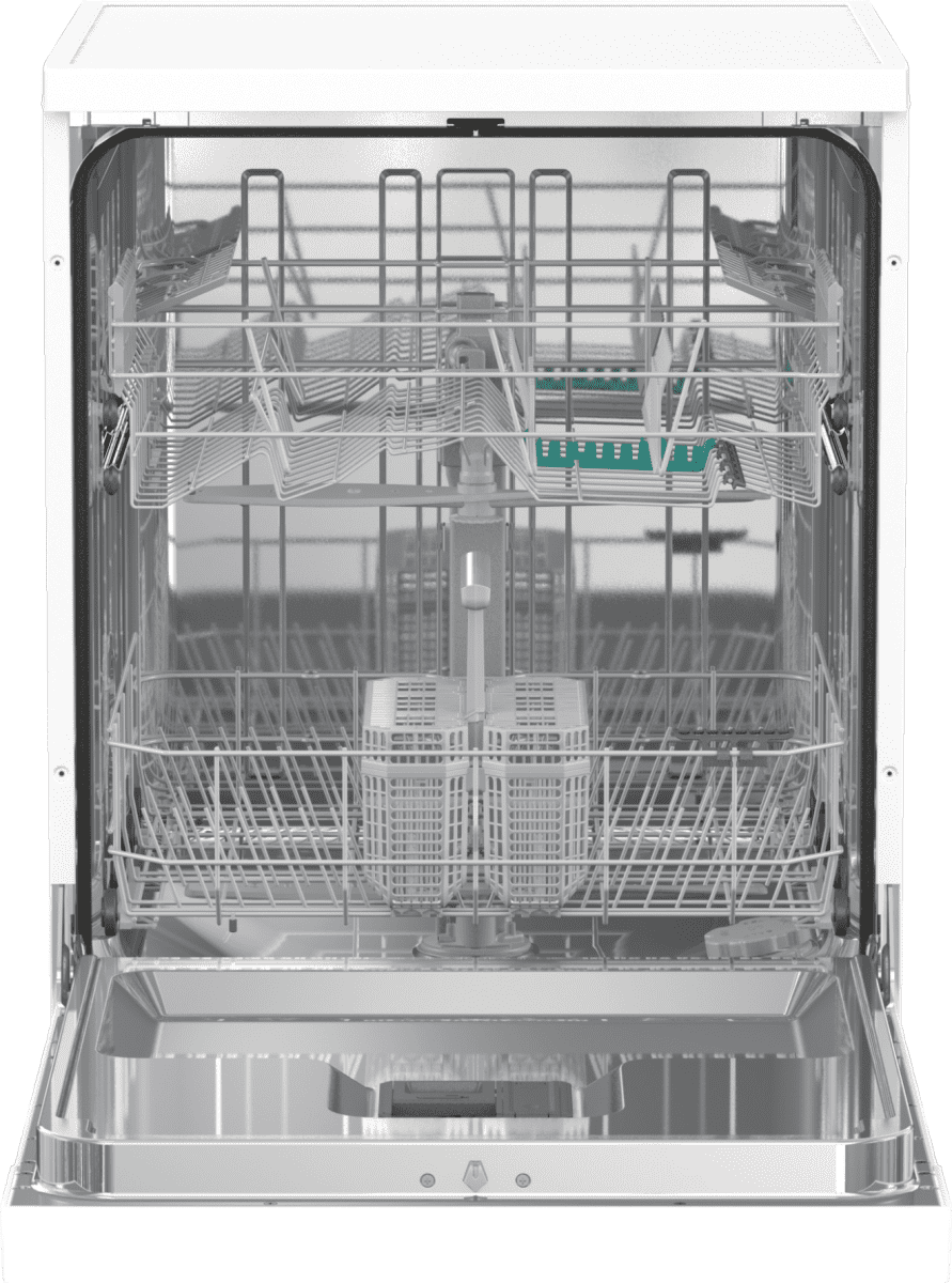 Pomivalni stroj spada v energijski razred E in nudi zmogljivost pomivanja do 13 pogrinjkov. Opremljen je z dvema prostornima in prilagodljivima košarama ter jasnim upravljalnim panelom. Nudi izbiro med šestimi programi in petimi glavnimi temperaturami pomivanja. Njegov učinkovit program za vsakdanje pomivanje deluje pri 65°C in poskrbi za čisto posodo v eni uri. Poleg tega se ponaša s funkcijo zamika vklopa. Za brezhibno delovanje in vzdrževanje stroja poskrbi samočistilni program, ki temeljito očisti kad, brizgalne ročice in cevi pomivalnega stroja.