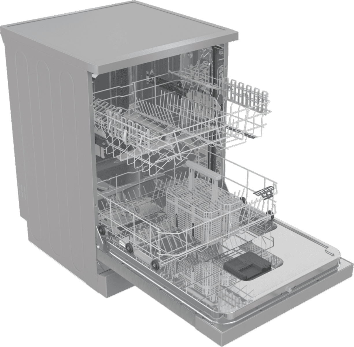 Pomivalni stroj spada v energijski razred E in nudi zmogljivost pomivanja do 13 pogrinjkov. Opremljen je z dvema prostornima in prilagodljivima košarama ter jasnim upravljalnim panelom. Nudi izbiro med šestimi programi in petimi glavnimi temperaturami pomivanja. Njegov učinkovit program za vsakdanje pomivanje deluje pri 65°C in poskrbi za čisto posodo v eni uri. Poleg tega se ponaša s funkcijo zamika vklopa. Za brezhibno delovanje in vzdrževanje stroja poskrbi samočistilni program, ki temeljito očisti kad, brizgalne ročice in cevi pomivalnega stroja.