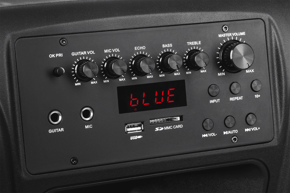 Aktivni zvočnik je opremljen z Bluetoothom, vrati USB in bralnikom kartic SD, kar vam omogoča enostavno predvajanje glasbe iz različnih virov. Poleg tega vam vgrajeni FM radio (87,50–108,00 MHz) omogoča poslušanje vaših priljubljenih radijskih postaj, ne da bi potrebovali dodatne naprave.