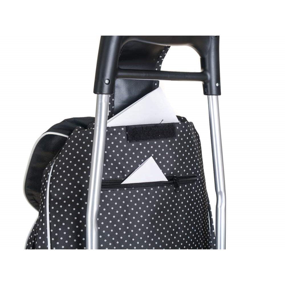 Nakupovalna torba na kolesih je pripomoček za težje nakupe, zlasti za starejše državljane in ženske. Prostornina vreče je 30 l, največja nosilnost pa 30 kg. Vrečko iz blaga je mogoče enostavno odstraniti s kovinske konstrukcije in jo je mogoče oprati. Torba za voziček ima ergonomski ročaj, konstrukcija torbe pa je ojačana s kovinskim prostorom za shranjevanje, ki stabilizira celoten izdelek. Plastična kolesca omogočajo enostavno premikanje po vseh površinah.