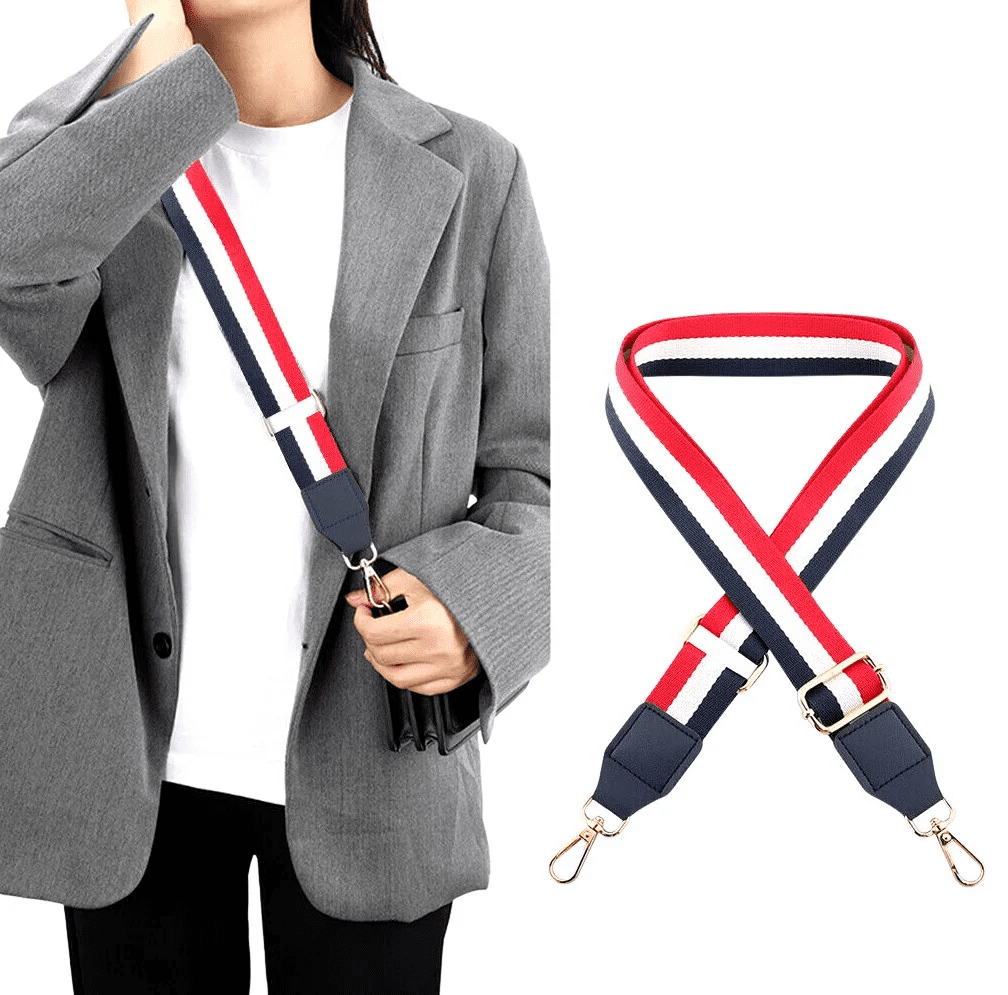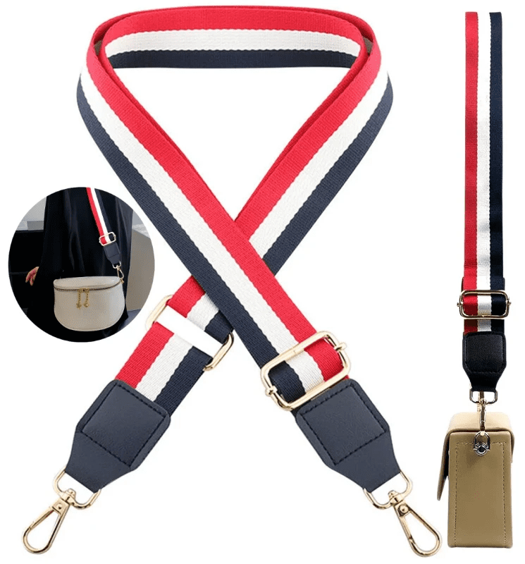 Predstavljamo vam eleganten širok nastavljiv pas za torbico ali nahrbtnik, ki bo popestril vaš najljubši modni dodatek. Izdelan je iz trpežnega poliestra, ta pas se ponaša z masivnimi kovinskimi karabinami in okrasitvijo z zlatim okovjem. Na voljo je v treh privlačnih barvah – temno modri, beli in rdeči – in zaradi ojačanih koncev iz umetnega usnja daje vaši torbici stilističen pridih.