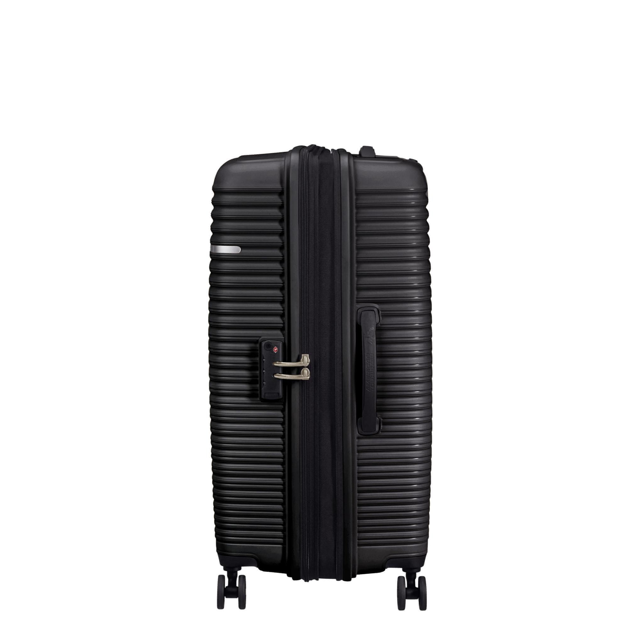 Kolekcija Liftoff navdihuje 3D videz z barvno usklajeno zadrgo in kovinskim logom American Tourister. Udobje omogočajo stranski in zgornji teleskopski izvlečni dvojni ročaj, dvojna koleščka z barvno usklajenimi zatiči in TSA ključavnico pri vseh treh velikostih kovčka. Štiri dvojna koleščka uporabniku omogočajo udobno vožnjo. V notranjosti kovček ponuja dvojno elastično pregrado, na drugi polovici kovčka pa se za lažjo organizacijo kovček loči z žepom na zadrgo.