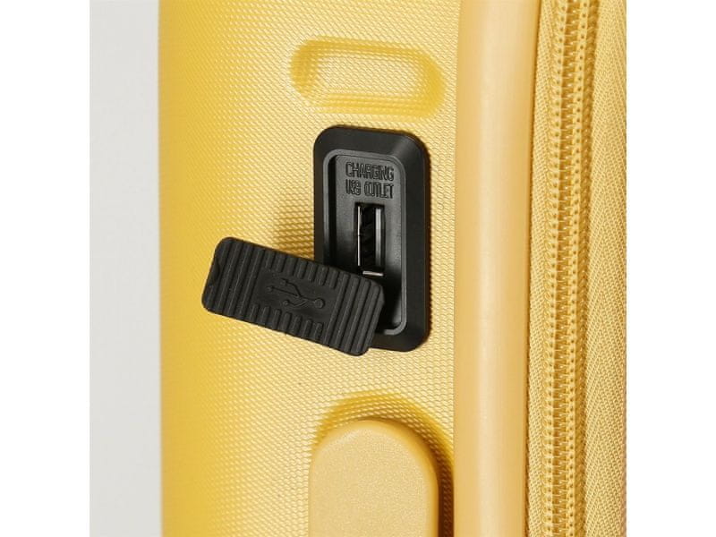 Cenili boste tudi dve posebni izboljšavi – možnost povečanja notranjega prostora s preprostim odpenjanjem zadrge in priročno vtičnico SMART za polnjenje mobilnih naprav. Tihi vrtljivi koleščki za 360° in teleskopski ročaj zagotavljata nemoteno upravljanje.